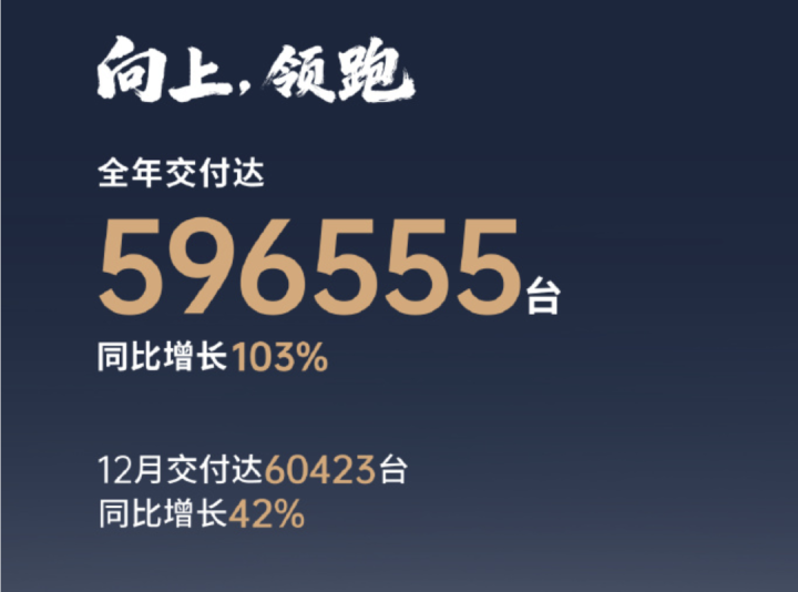 零跑汽车12月全系交付60423辆,同比大增42%。2025年,零跑汽车累计交付596555辆,同比增长103%。按照计划,零跑汽车将在2026年完成年销量100万辆的目标。在造车新势力中,零跑已站稳第一梯队。