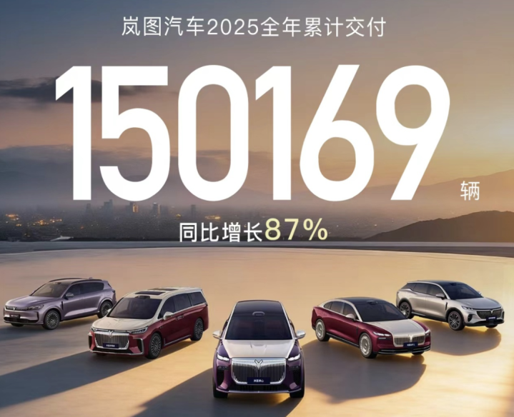 作为东风汽车旗下的高端品牌,岚图汽车在2025年交出一份漂亮的答卷。2025年全年交付新车150169辆,同比增长87%。按照其全年交付量推算,岚图汽车12月销量为1.5万辆。